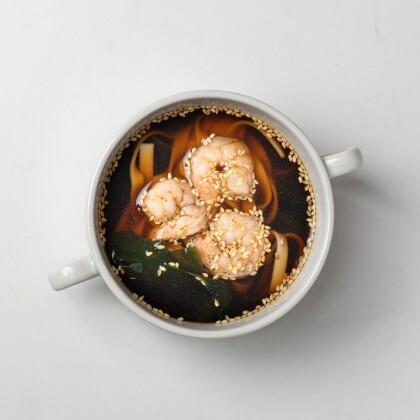 Бульон Том-Ям, Рис на Пару, Кунжут, Креветки, Морской Окунь, Кальмар, помидоры Черри, грибы шампиньоны