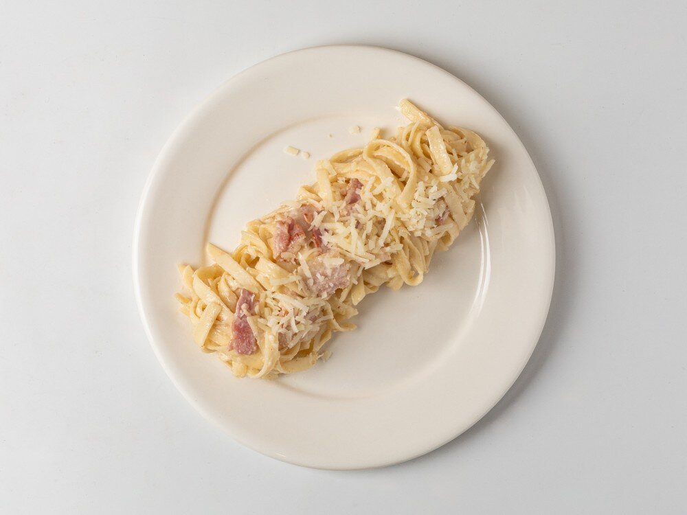 Лапша удон, бекон, сливки, сыр Пармезан, специи